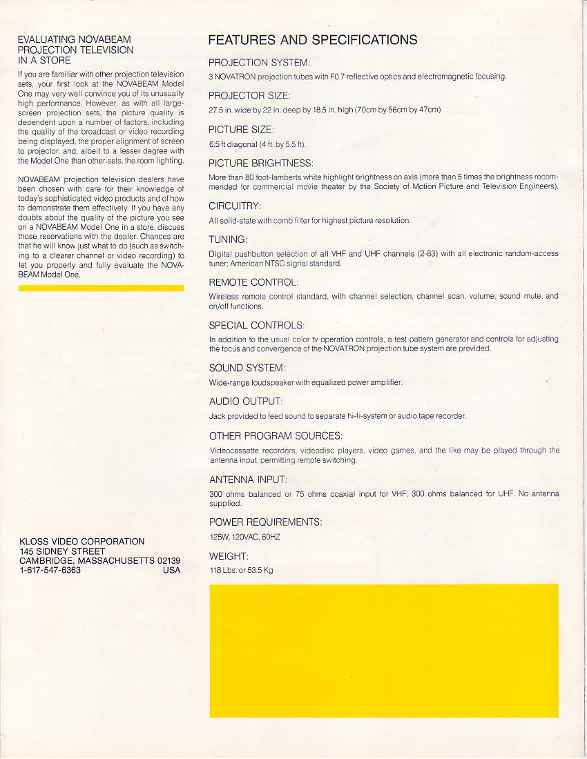 Kloss - NovaBeam Model One Brochure